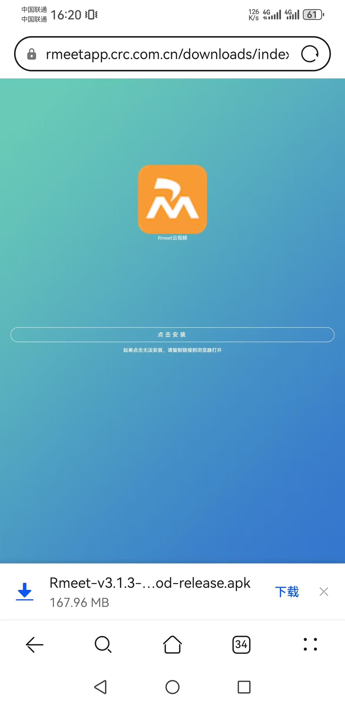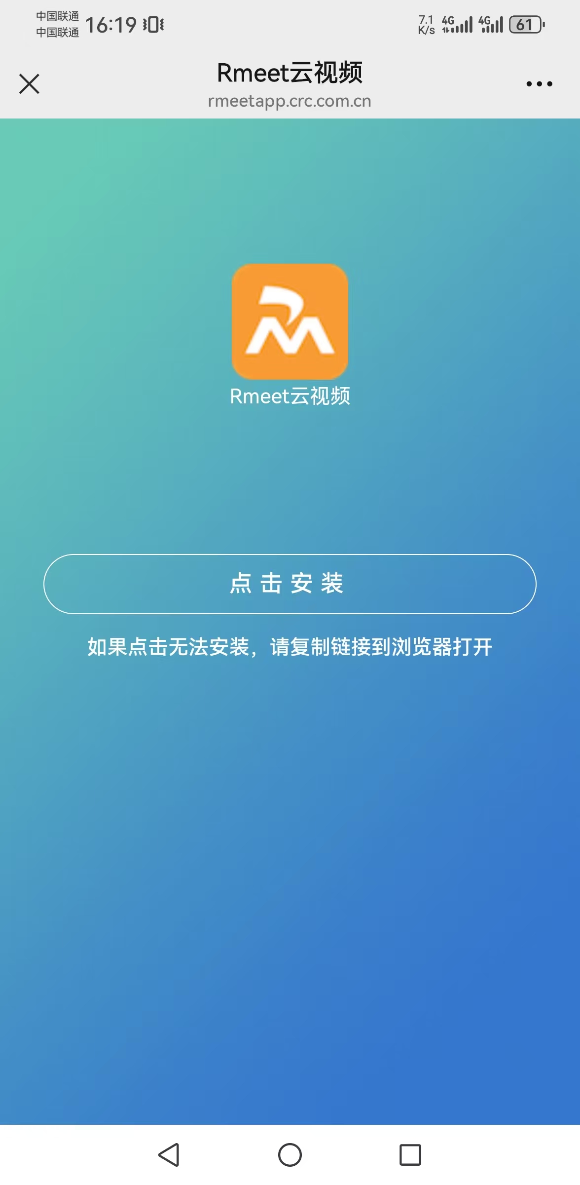 注意:如点击【点击安装】无反应,请点击浏览器中网址区域-长按后复制,手动粘贴至其他浏览器打开。