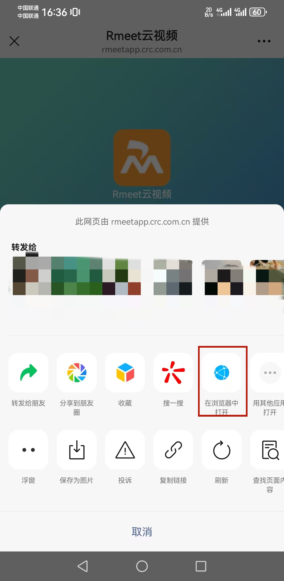 扫描二维码后点击右上角【···】,选择【在浏览器打开】