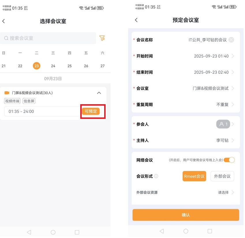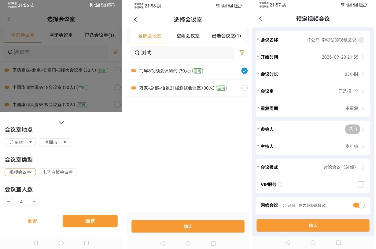 ② 移动端预约会议室
