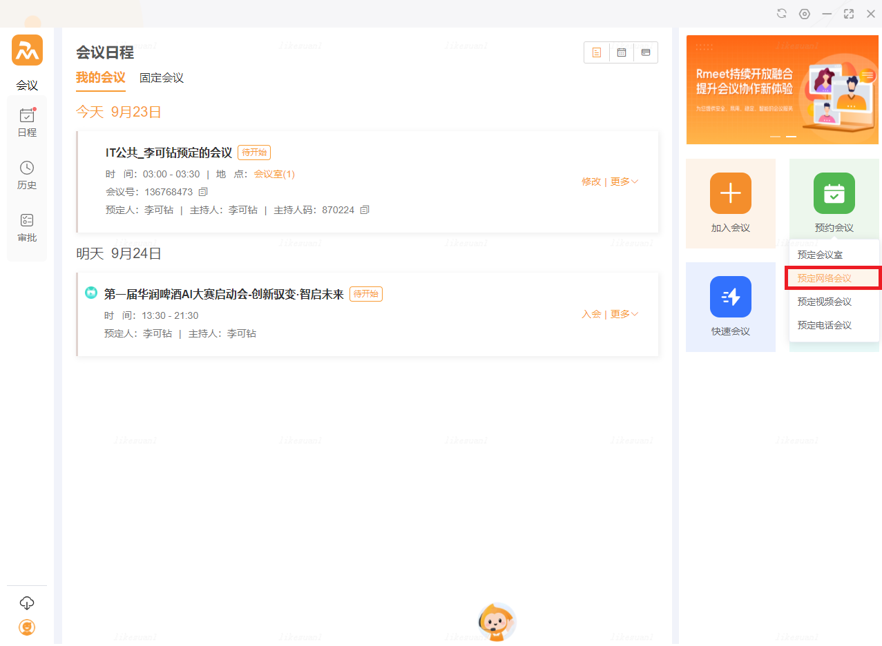 ② PC端预约网络会议