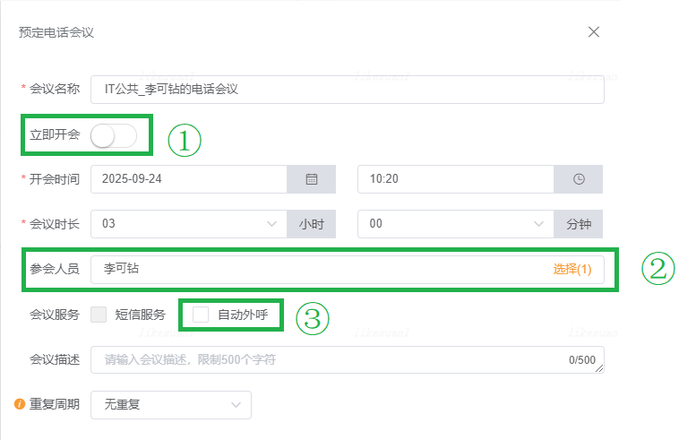 1.10.1预约电话会议