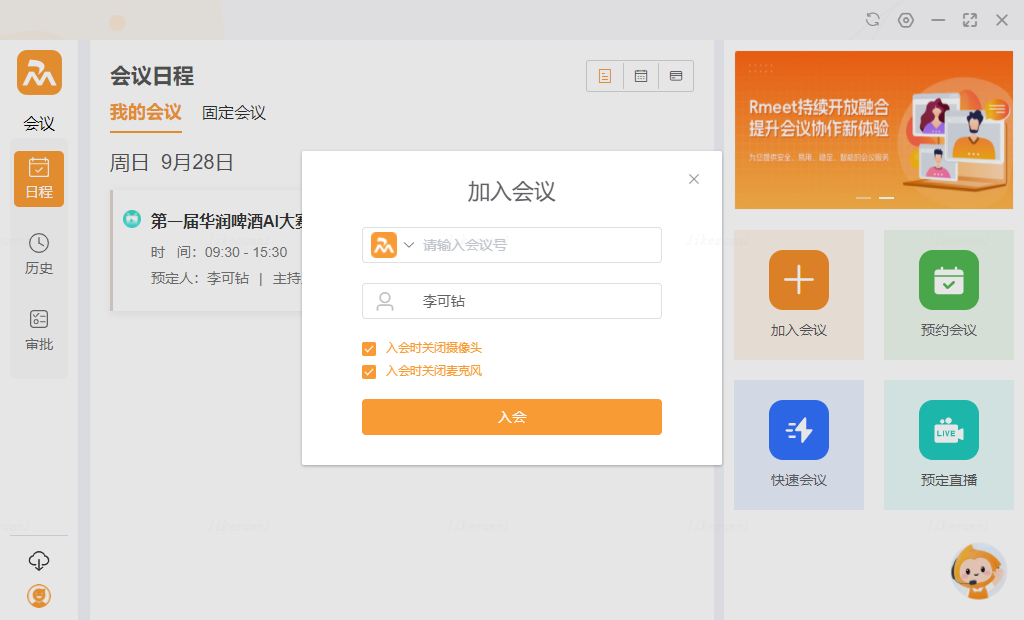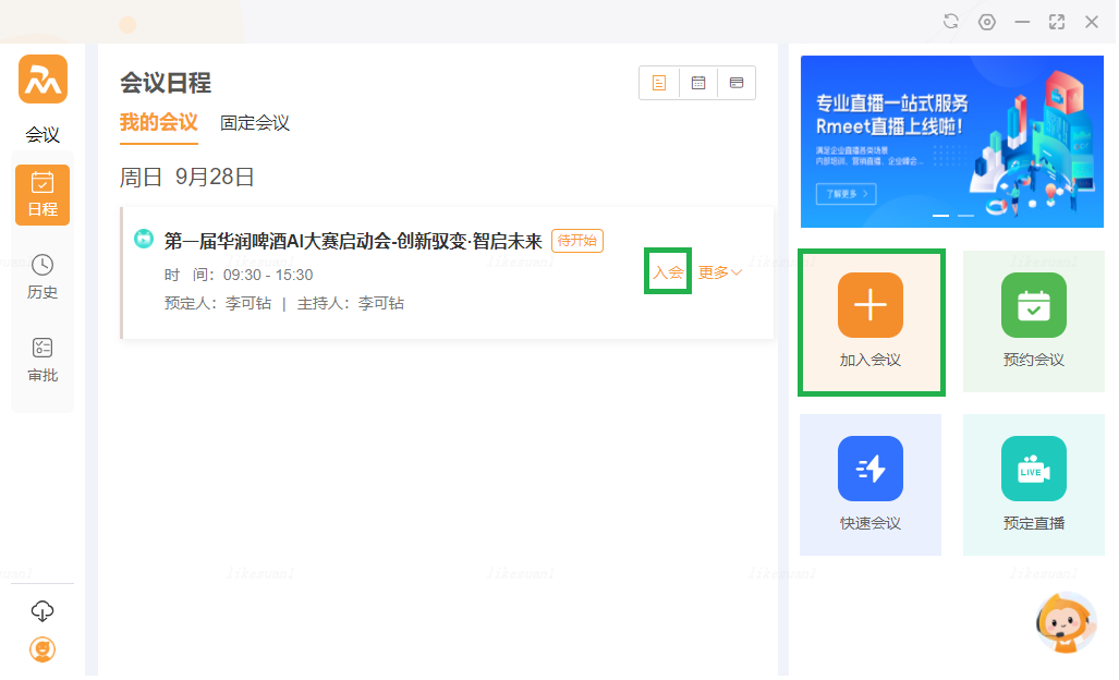 - Rmeet网络会议不受会议开始时间限制,可以提前入会