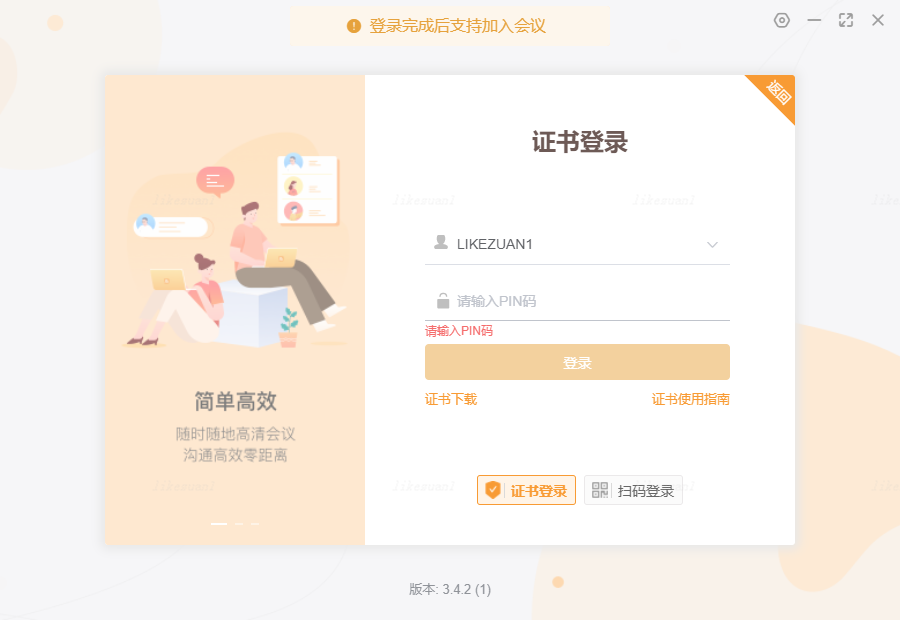 2)客户端登录:①证书登录 ②扫码登录