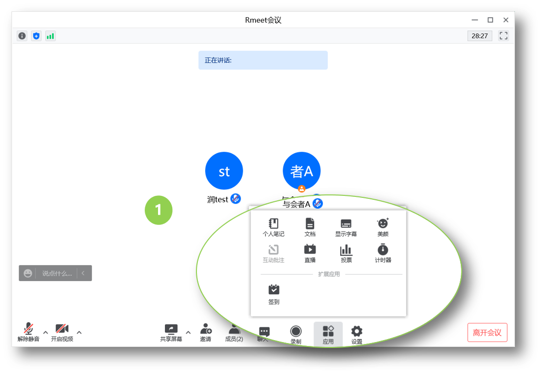 会中工具栏,点击【应用】: