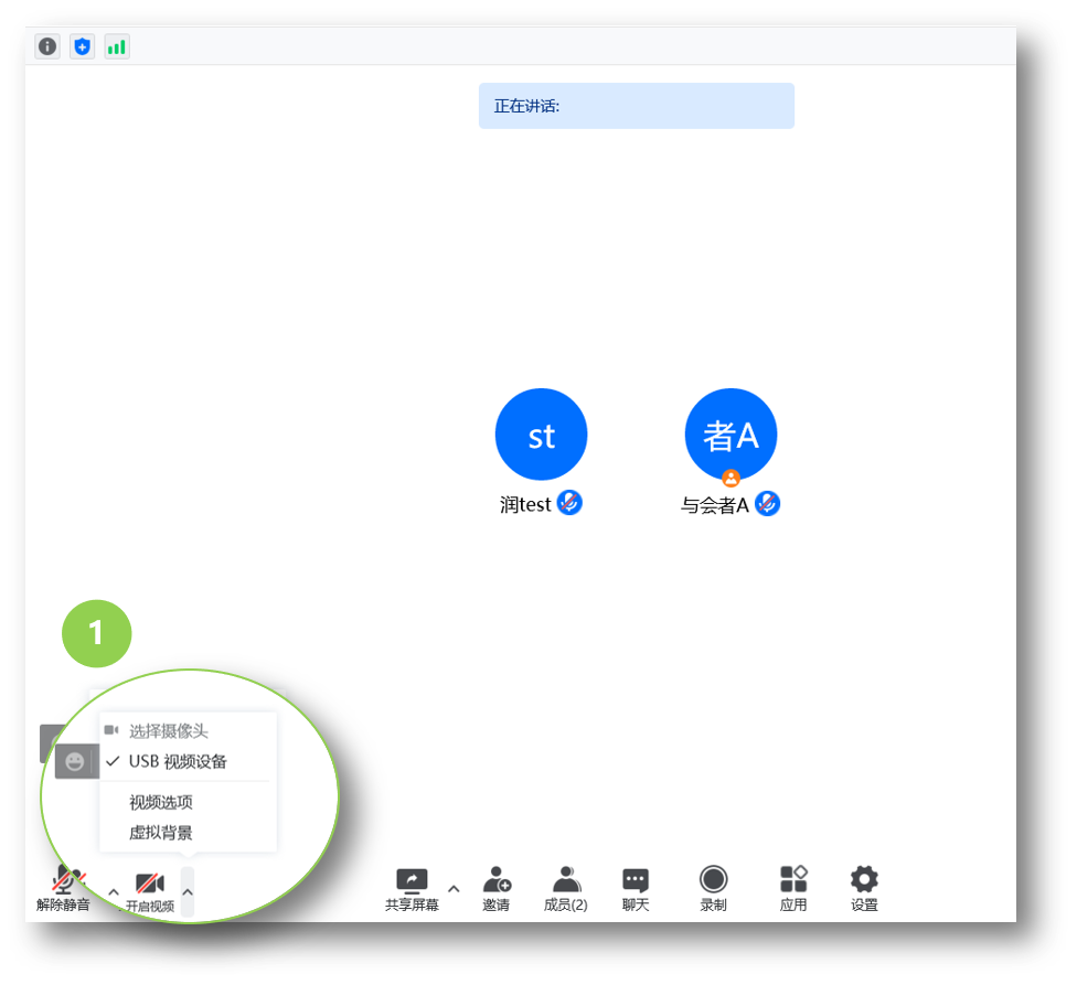 位置①切换到用户管理,管理的是网络会议中的参会者
