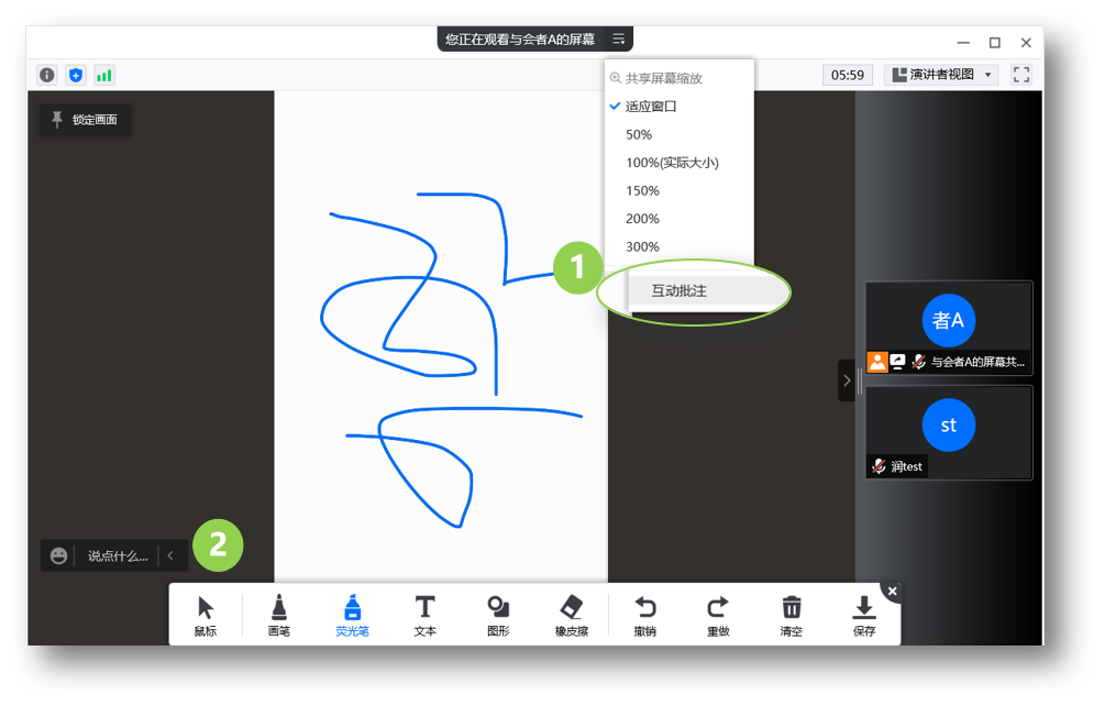 - 企业版开启批注点击协作功能,客户端的参会者都可以对内容进行远程批注